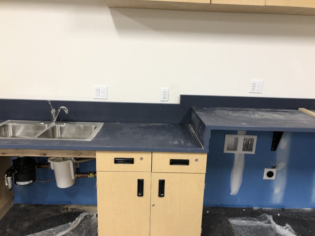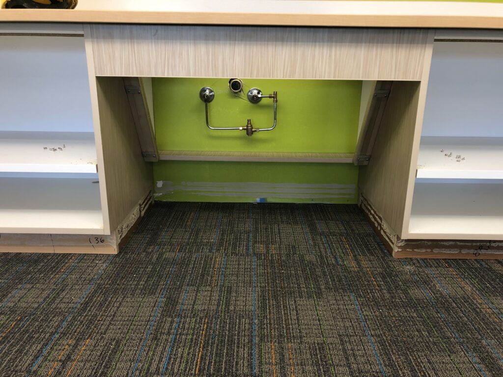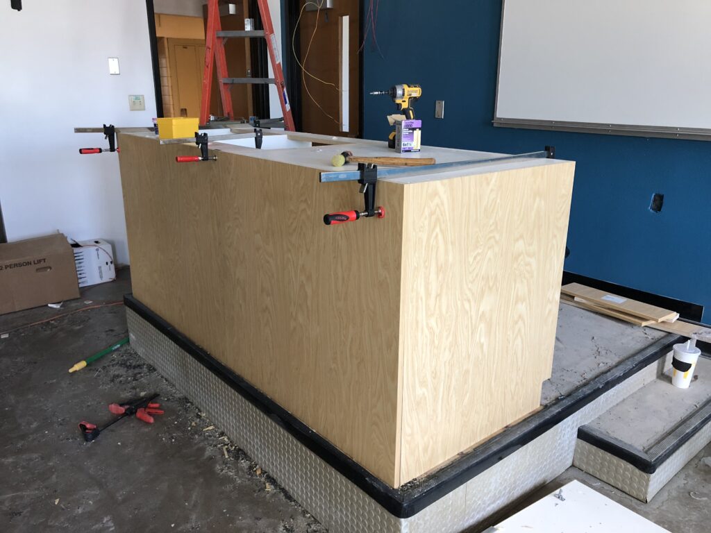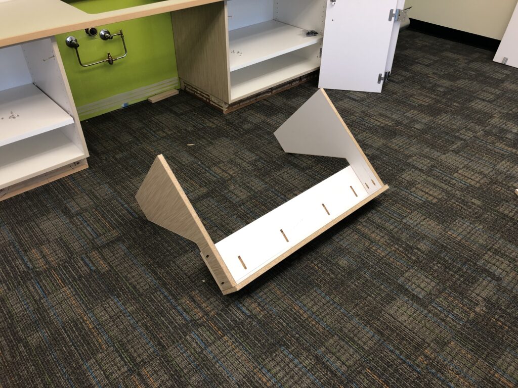 This is ADA access for a sink in a classroom. It had to be built on site because of a breakdown with the cabinet company.