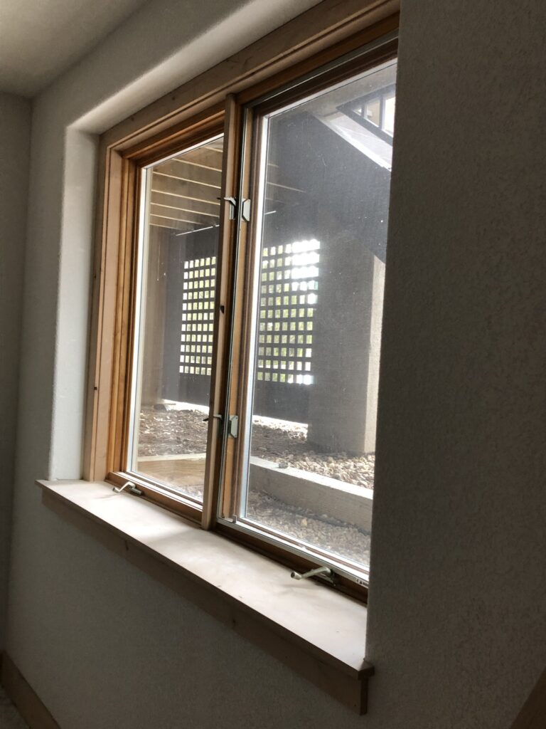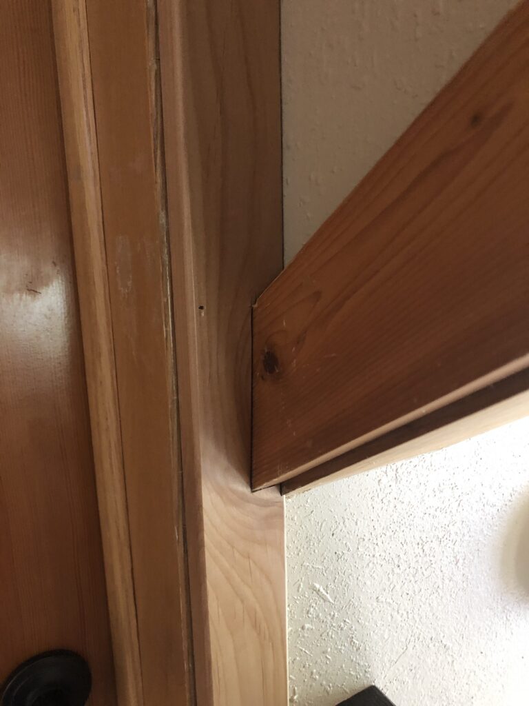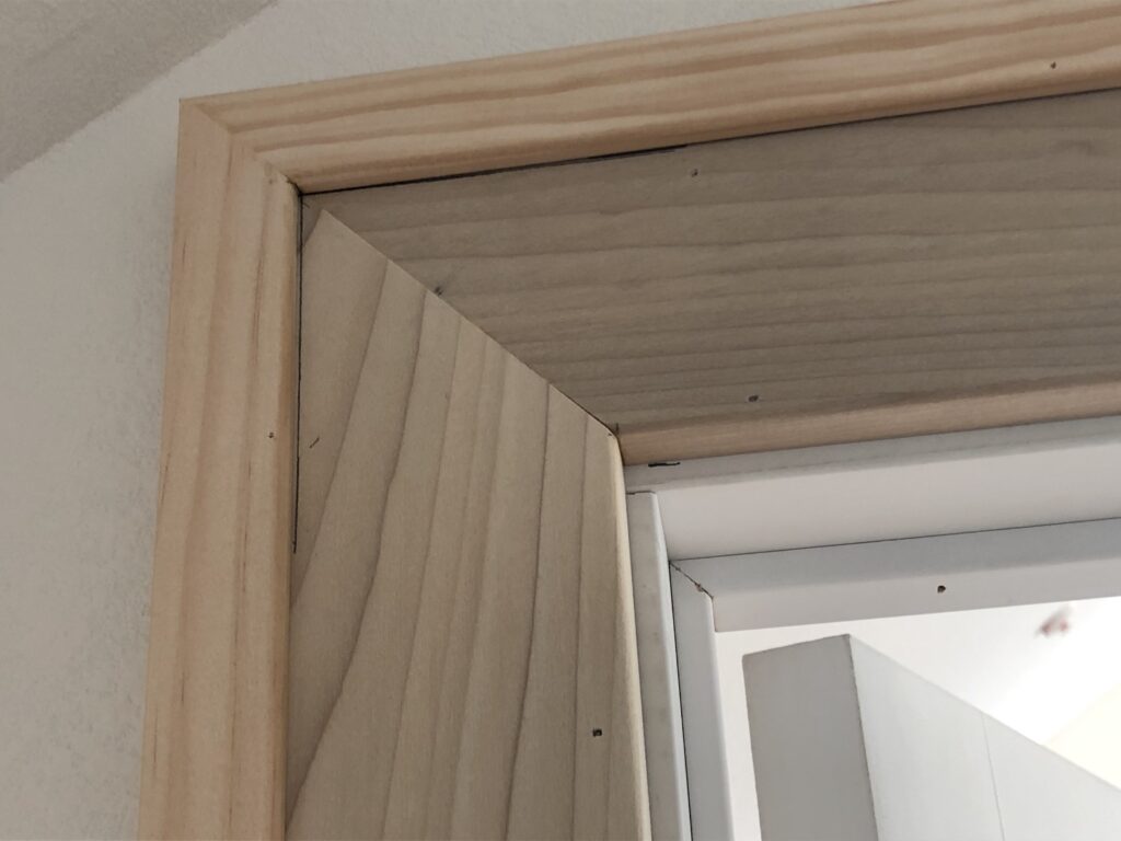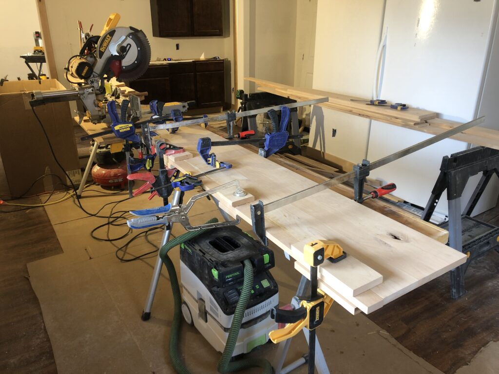 Solid core knotty alder door with schoolhouse casing detail, installed on T&G wall. One of the first jobs I bid, built and installed myself. This was winter 2105. See the sketch I submitted to builder below… first sketch also! Gluing up a blank for a large window sill. Inset basement window, case/sill. Casing had to scribe all the way around! Clean, tight miter with biscuits. Love the back-band. Had to install it with a 3/16” lap, per spec. Always line up the headers when your installing doors so the casings are level! Cutting down bifold doors to fit into opening that was framed 1/2” to narrow. I use a Kreg sled and track with my 6 1/2” Makita circular saw to achieve a flawless, straight cut. Then I clean up the edges with a sanding block to match the existing edge.