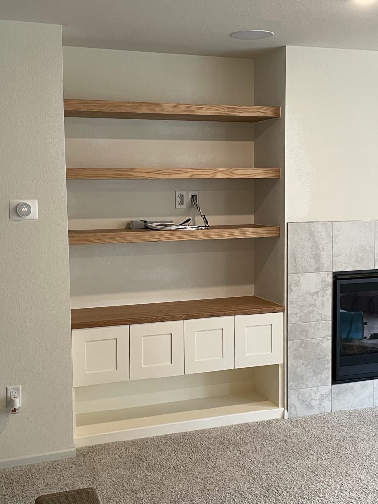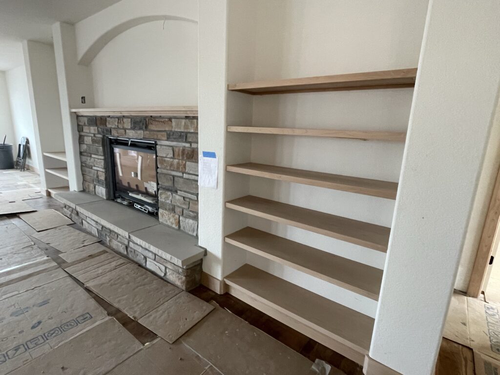 Floating shelves and mantle for a new construction home in Torrington, WY. November 2022.